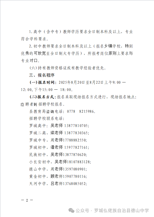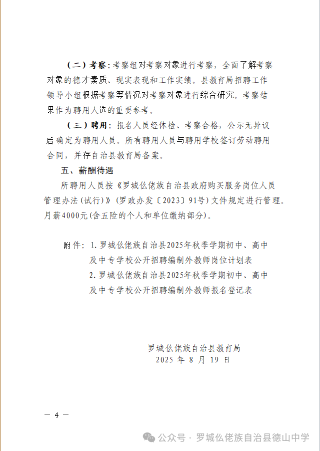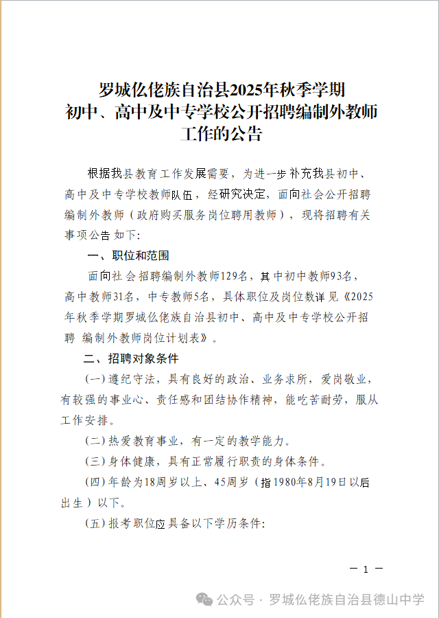 原文標題:羅城仫佬族自治縣2025年秋季學期初中、高中及中專學校公開招聘編制外教師工作的公告