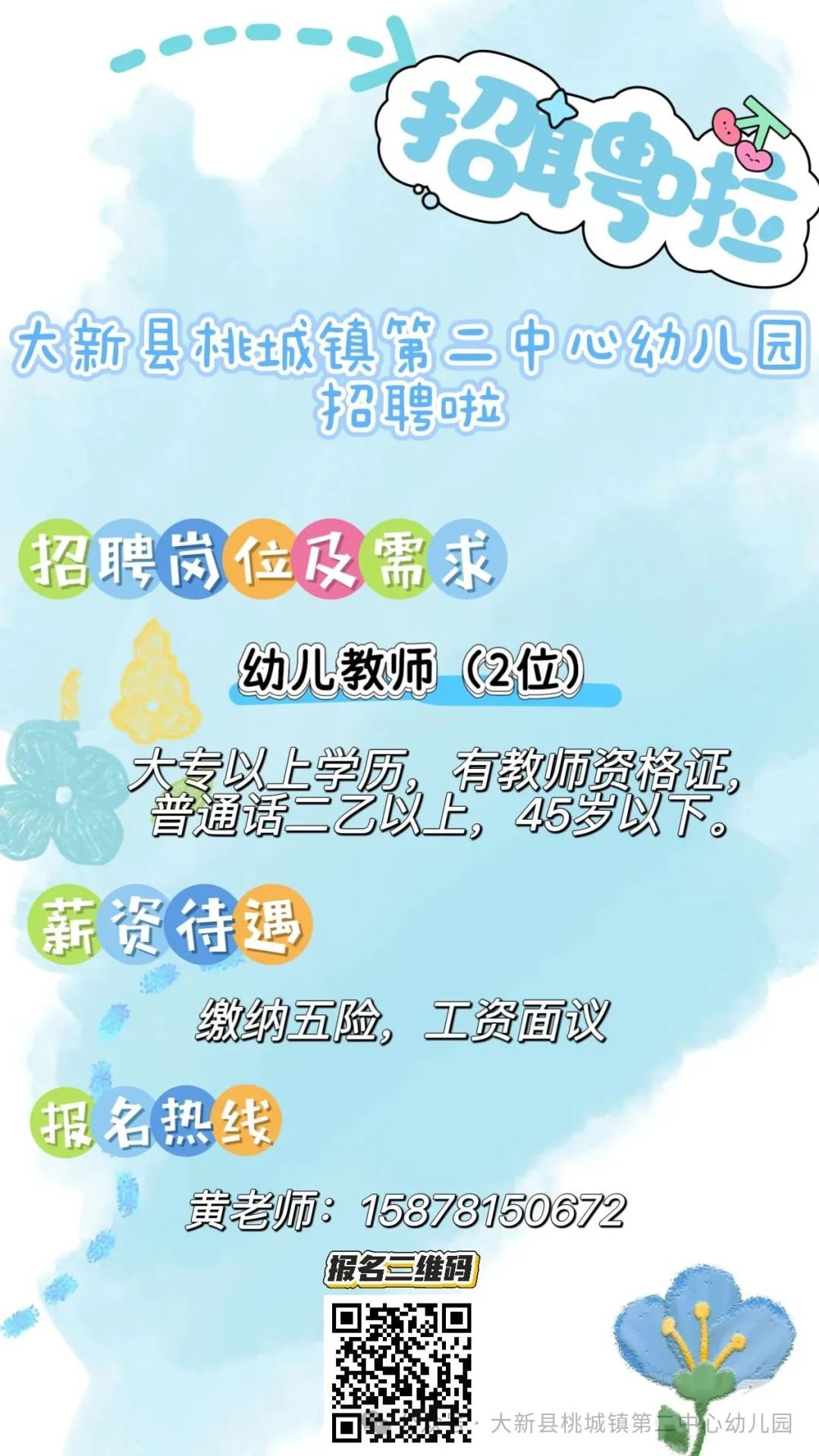 原文標題:大新縣桃城鎮第二中心幼兒園招聘公告
