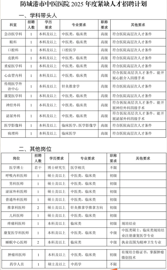 (二)符合醫院或防城港市引進政策的人才可享受相應安家待遇。