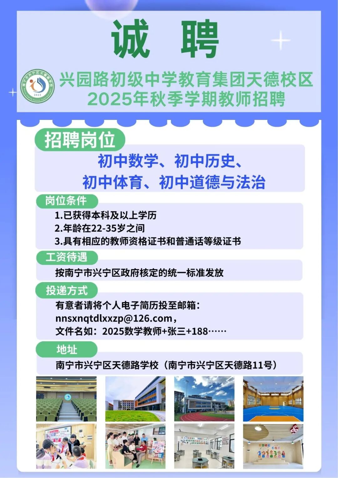 2025年南寧市興園路初級中學教育集團天德校區秋季學期教師招聘