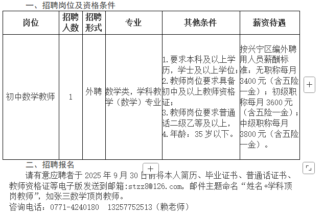 2025年南寧市興寧區三塘鎮四塘中學秋季學期招聘1人