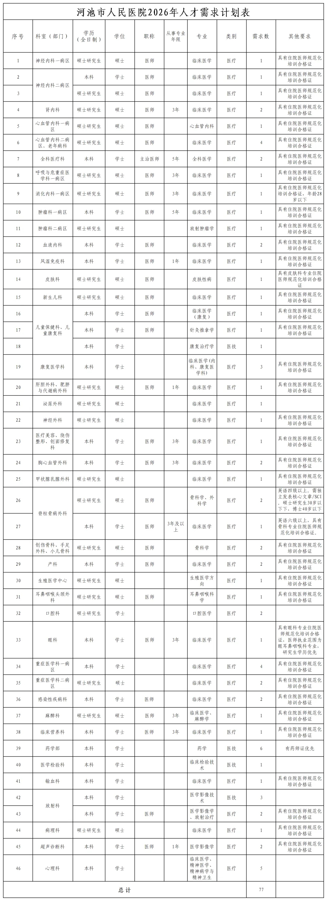 原文標(biāo)題:【河池市人民醫(yī)院2026年人才招聘公告】尋覓“醫(yī)”家人,共筑健康夢(mèng)