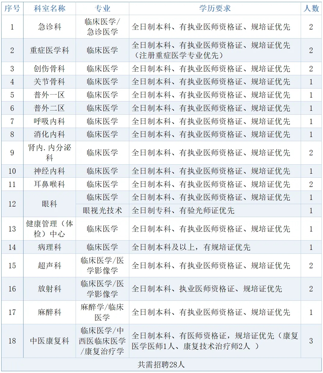 為了促進醫院醫療業務發展,擬招聘醫學類各專業技術人員, 招聘細則如下: