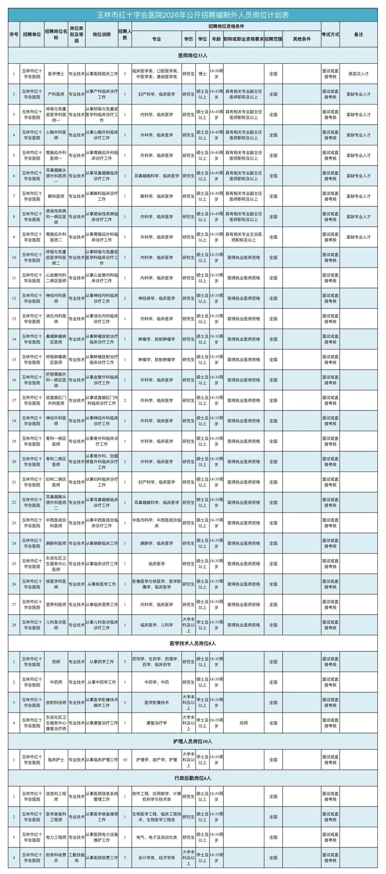 2.護理崗位:主要面向應屆畢業生,須為普通高校本科及以上學歷護理學(助產學)專業,并在2026年或之前通過護士執業資格考試;