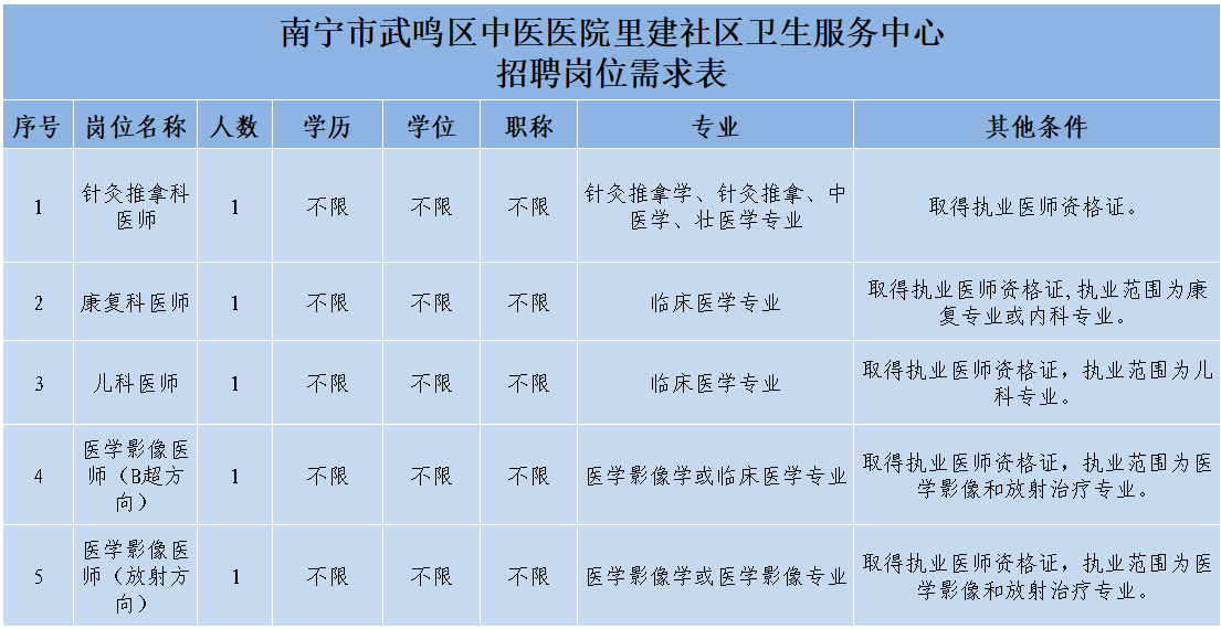 3.報名地址:南寧市武鳴區城廂鎮育才路2號中醫醫院新辦公區203人事科辦公室。