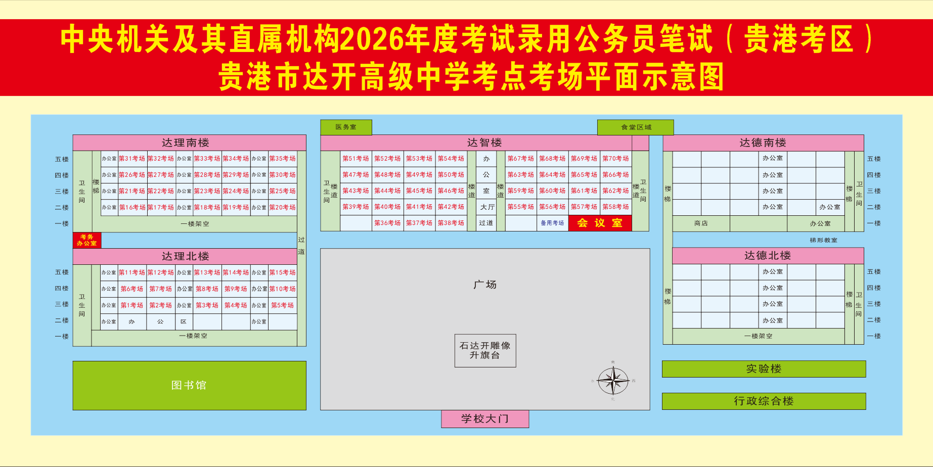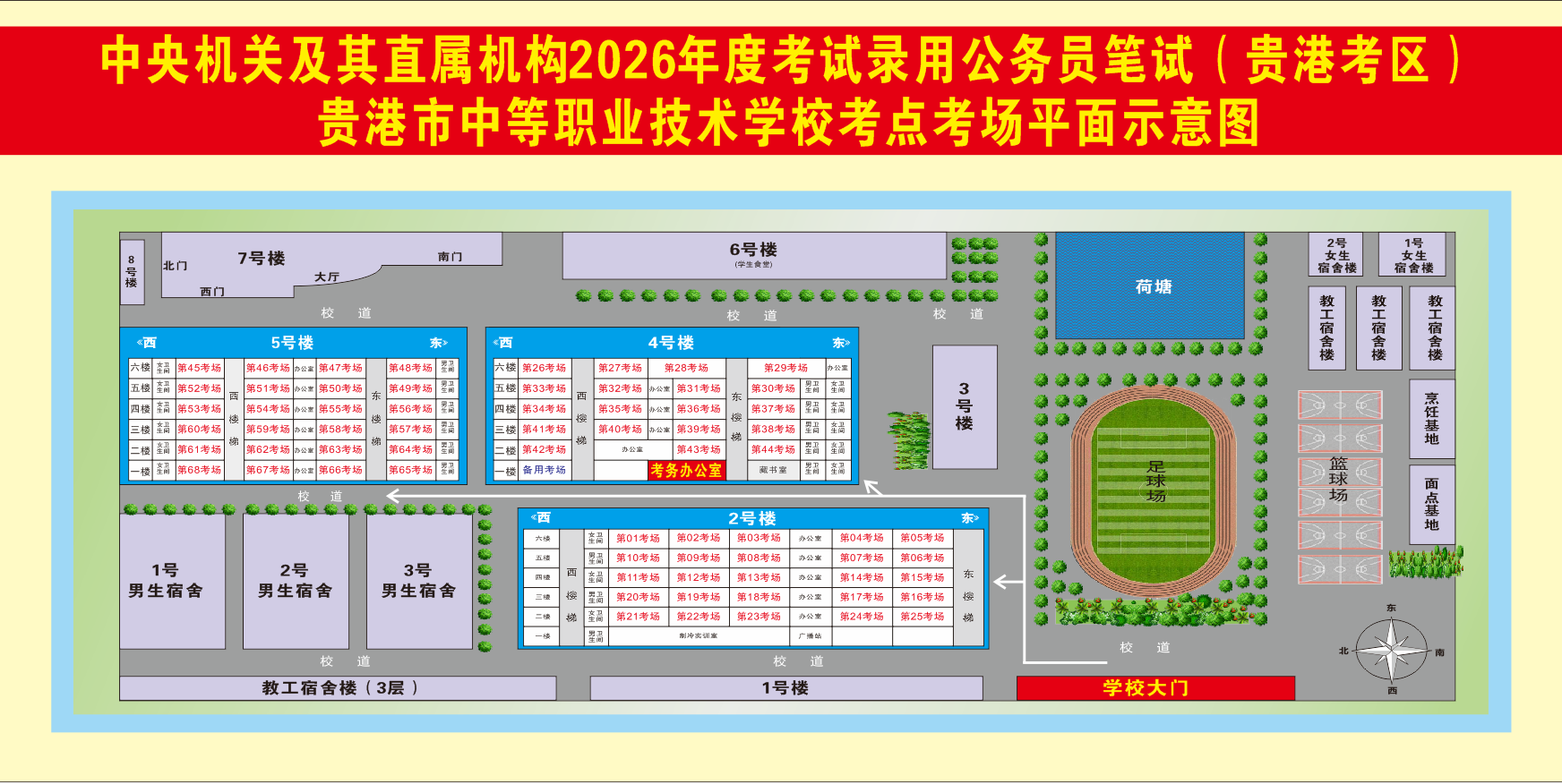 2026年度國家公務員筆試(貴港考區)溫馨提示及考場分布