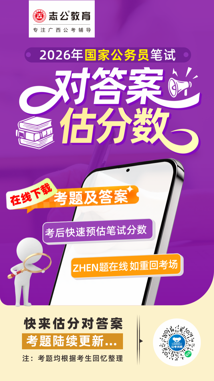 剛走下考場?志公教育為廣西考生整理了2026國考筆試考及答案在線下載服務,推出在線估分平臺,助你快速預估分數。