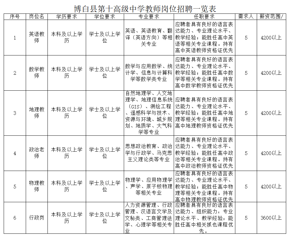 原文標題:急聘!急聘英才 共創未來|博白縣第十高級中學2025年教師招聘啟事
