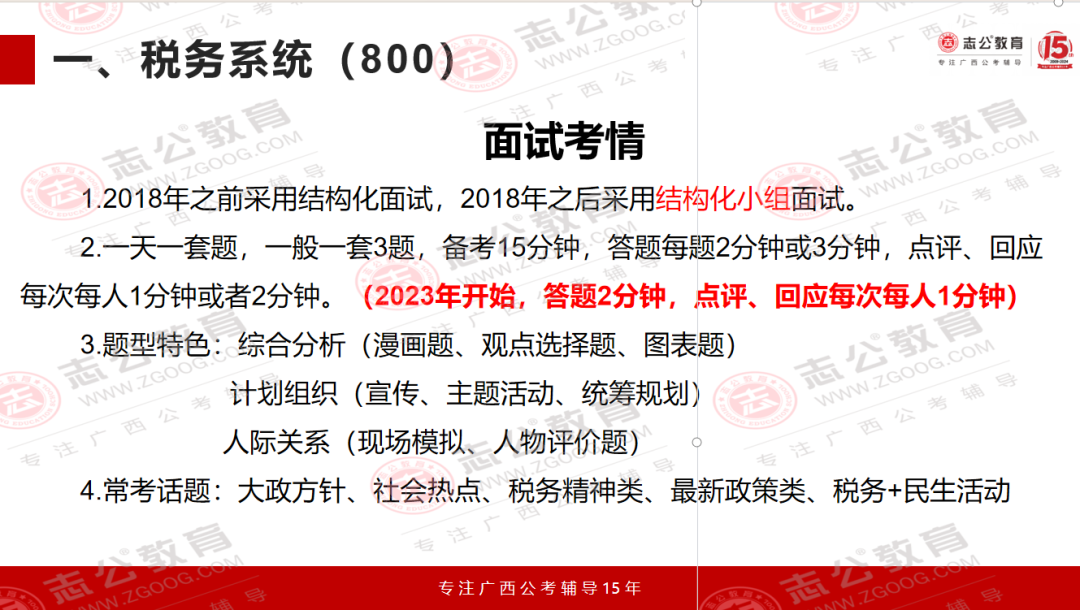 自2018年開始,稅務系統率先在結構化面試的基礎上,采用了一種新的面試形式——結構化小組面試。在這種模式下,題目的類型和結構化面試基本沒有區別,但是作答模式發生了改變。