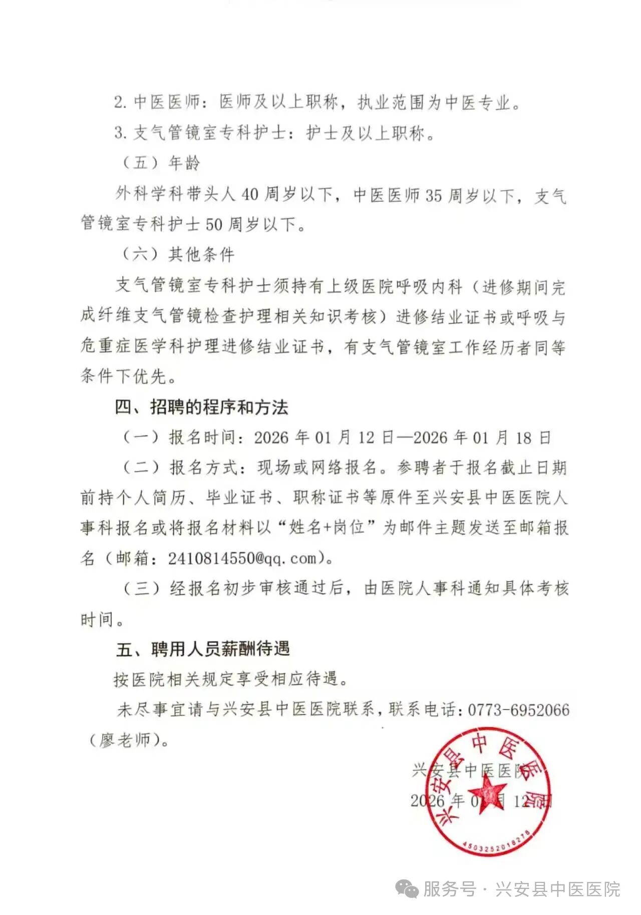 原文標題:2026年興安縣中醫醫院招聘醫護人員的公告