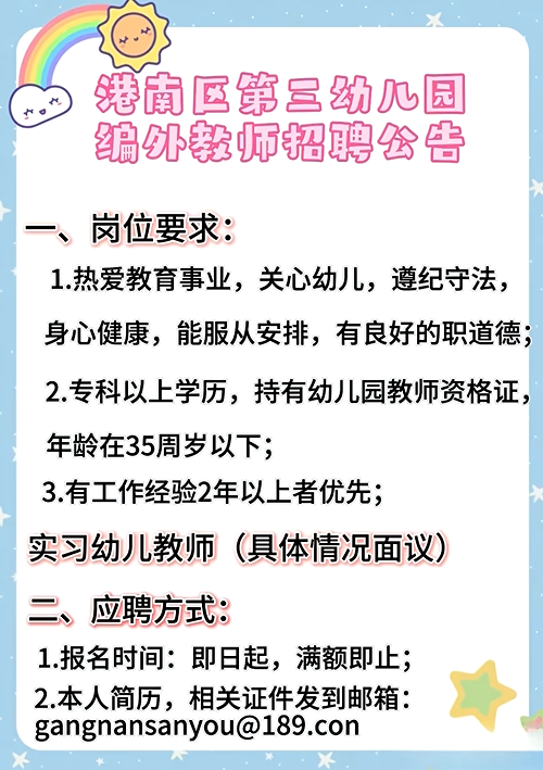 2026年貴港港南區第三幼兒園編外教師招聘公告