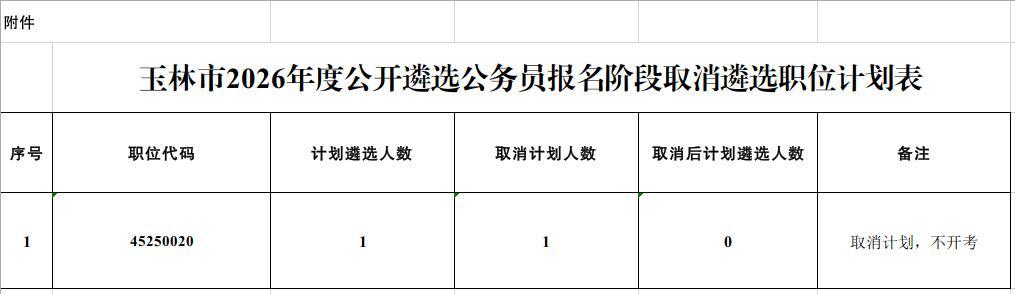 原文標題:關(guān)于玉林市2026年度公開遴選公務(wù)員報名階段取消職位計劃的通告