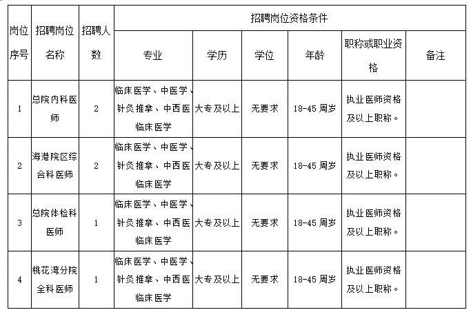 具體招聘辦法由港口區(qū)人民醫(yī)院人事科負責解釋。