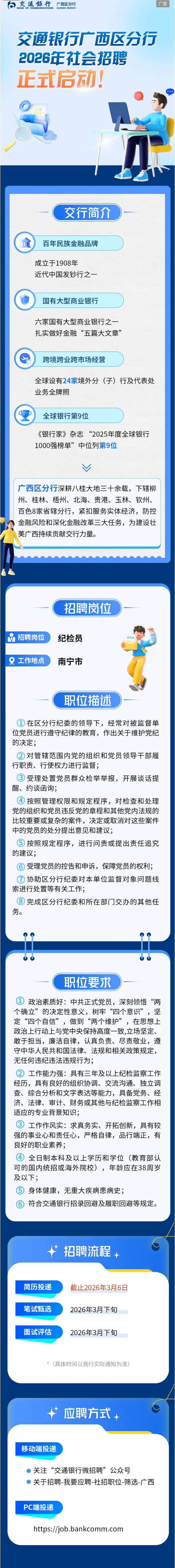 交通銀行廣西區(qū)分行2026年社會(huì)招聘正式啟動(dòng)