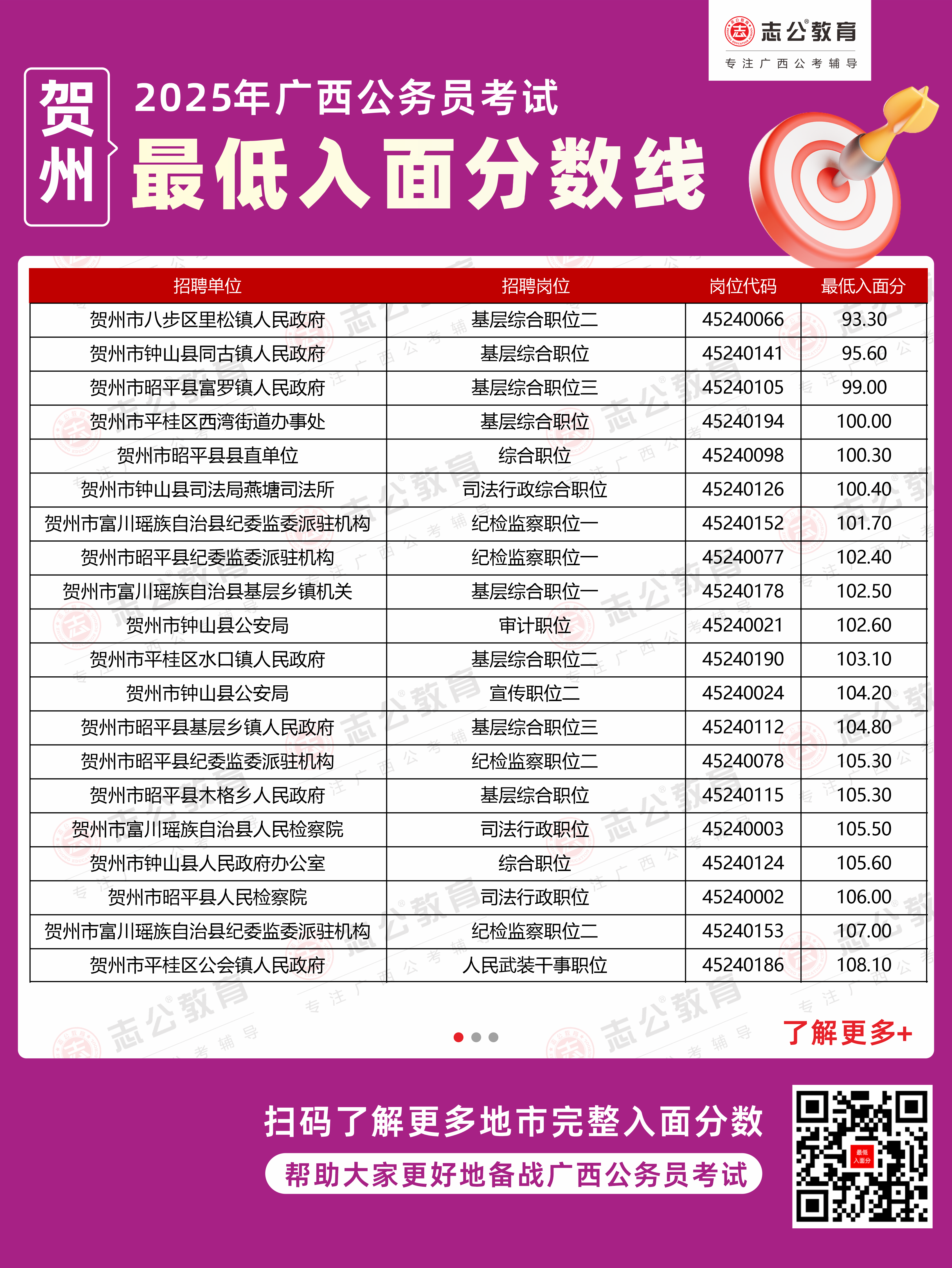 (點擊下載更多2025年賀州公務員最低入面分數,數據整理自官方發布的面試資格審查公告)