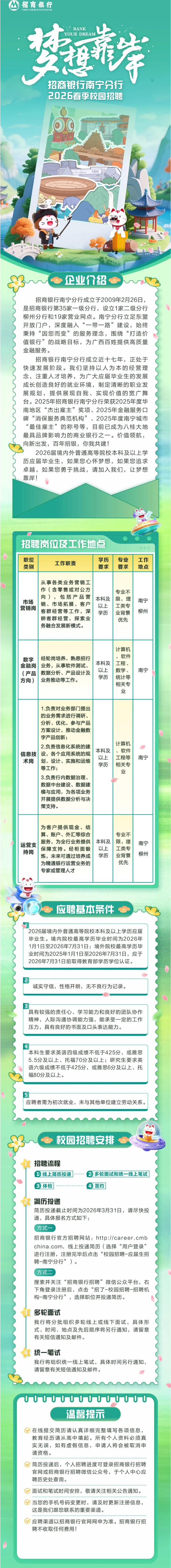 原文標題:南寧|“夢想靠岸”招商銀行南寧分行2026春季校園招聘